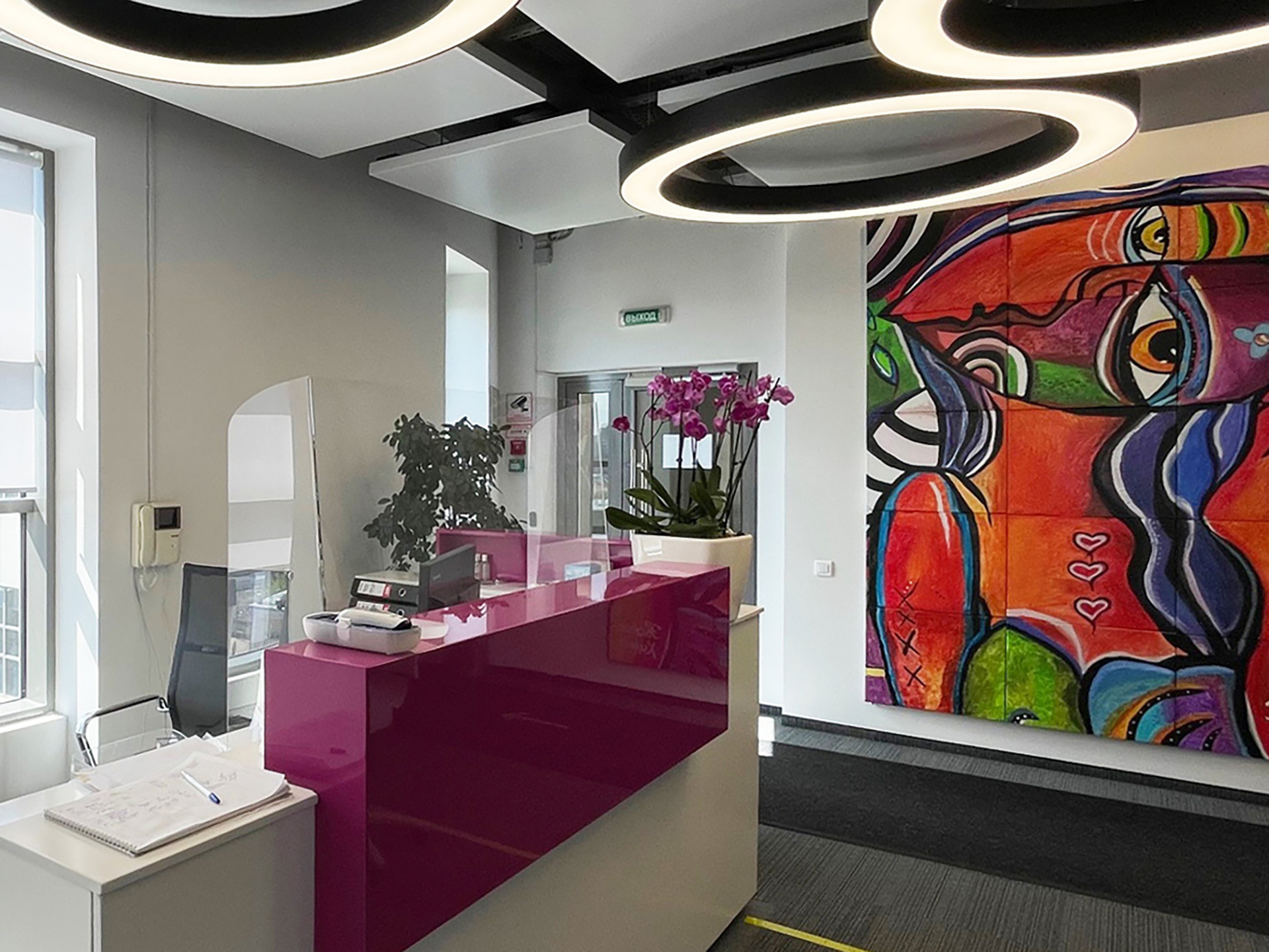 Здание БЦ выполнено в стиле Hi-Tech. Оформление внутреннего пространства также соответствует ультрасовременному стилю — хромированный металл, прозрачные или непрозрачные стеклянные перегородки, многоуровневые потолки с точечной подсветкой. За комфортный микроклимат в офисах и холлах отвечает система центрального кондиционирования, приточно-вытяжная вентиляция.